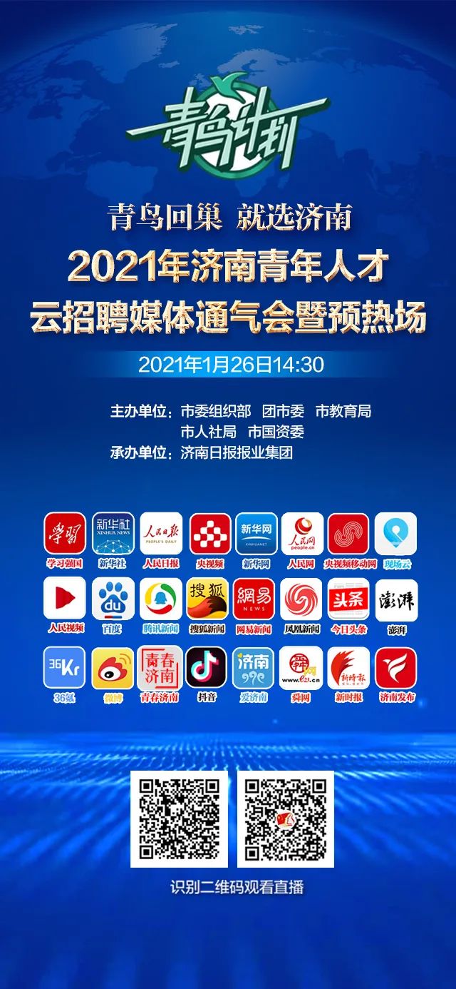 为深入贯彻落实济南市委市政府关于实施人才强市战略的部署要求,全力做好疫情防控期间老员工就业服务工作,共青团济南市委结合老员工寒假返家乡有利工作时机,启动“青鸟计划 追梦济南”青年人才云招聘第二季,通过系列招聘活动汇集高校智力要素、精准链接人岗供需、激发人才支撑活力,吸引集聚更多优秀高校毕业生来济就业创业。