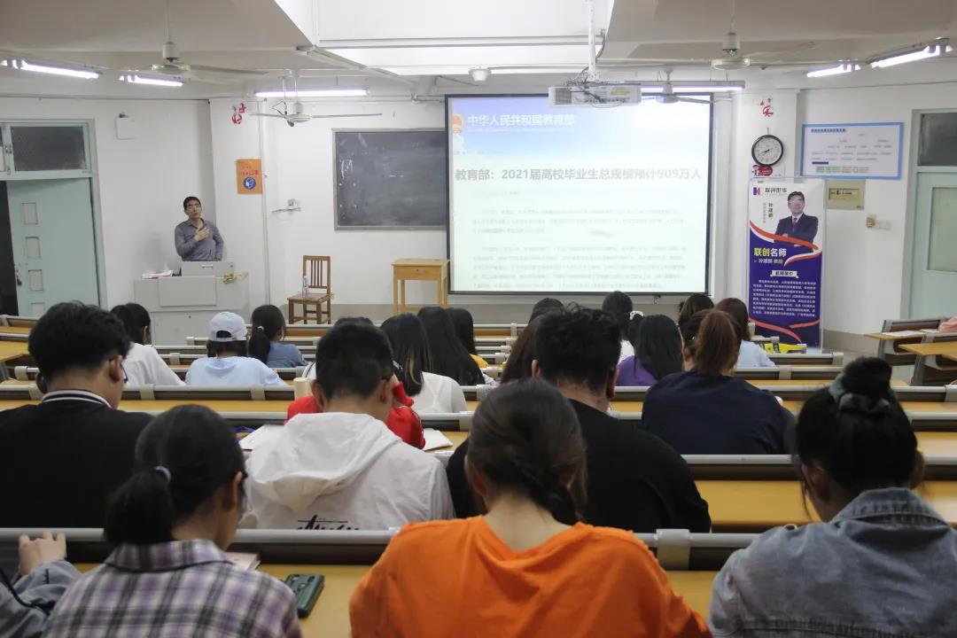 职海茫茫,人才领航。活动在主持人热情洋溢的开场白中正式拉开帷幕。在进行了简单的自我介绍后,孙建鹏教授结合PPT就2022年公职类就业趋势、公职类考试备考指导两个方面展开详细的讲解。孙教授以2021届高校毕业生就业情况和规模为切入点,紧紧围绕当前社会形势,结合自身经验,对未来的就业趋势进行精准预测和分析,并结合不同专业的招录情况,提出合理建议。
