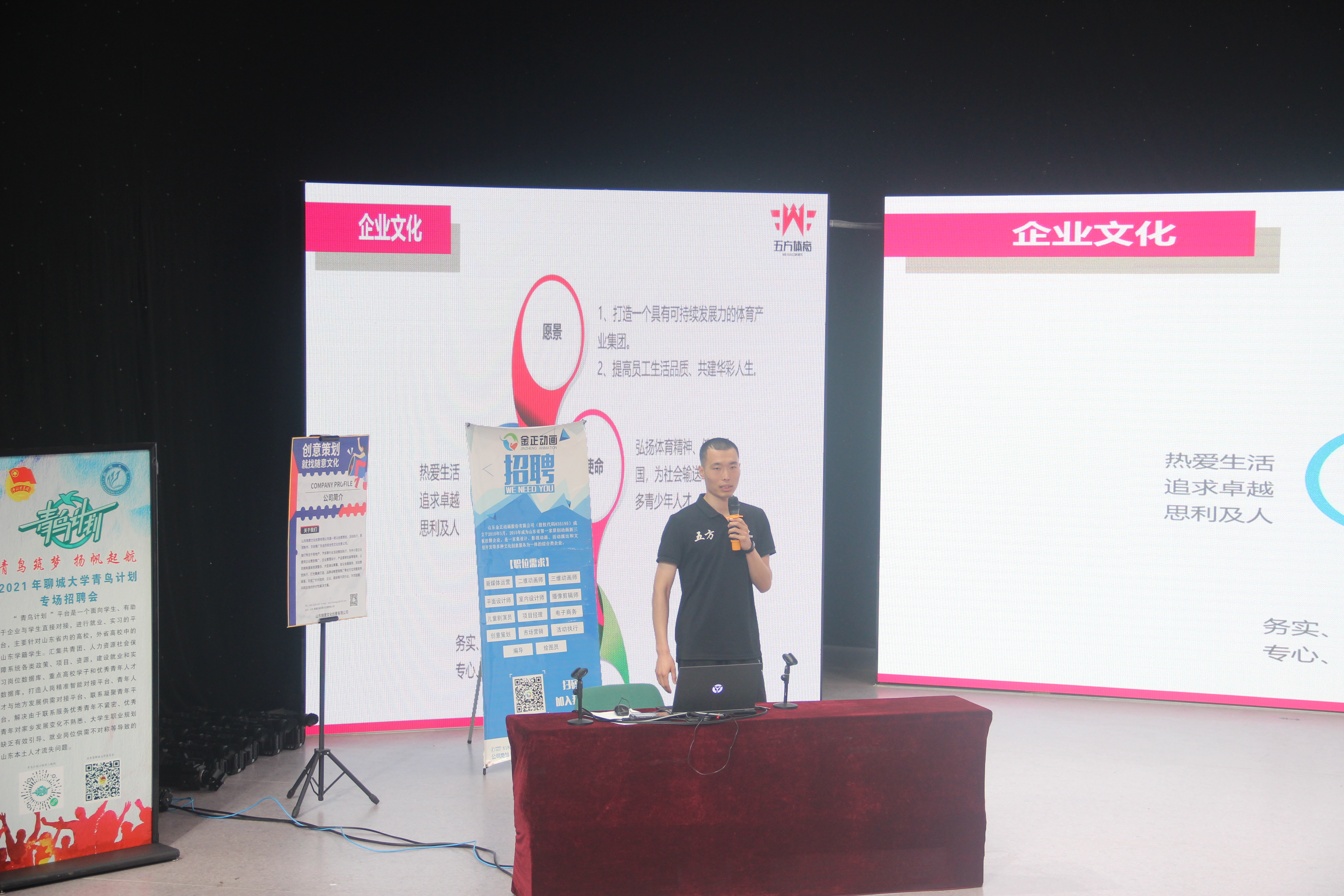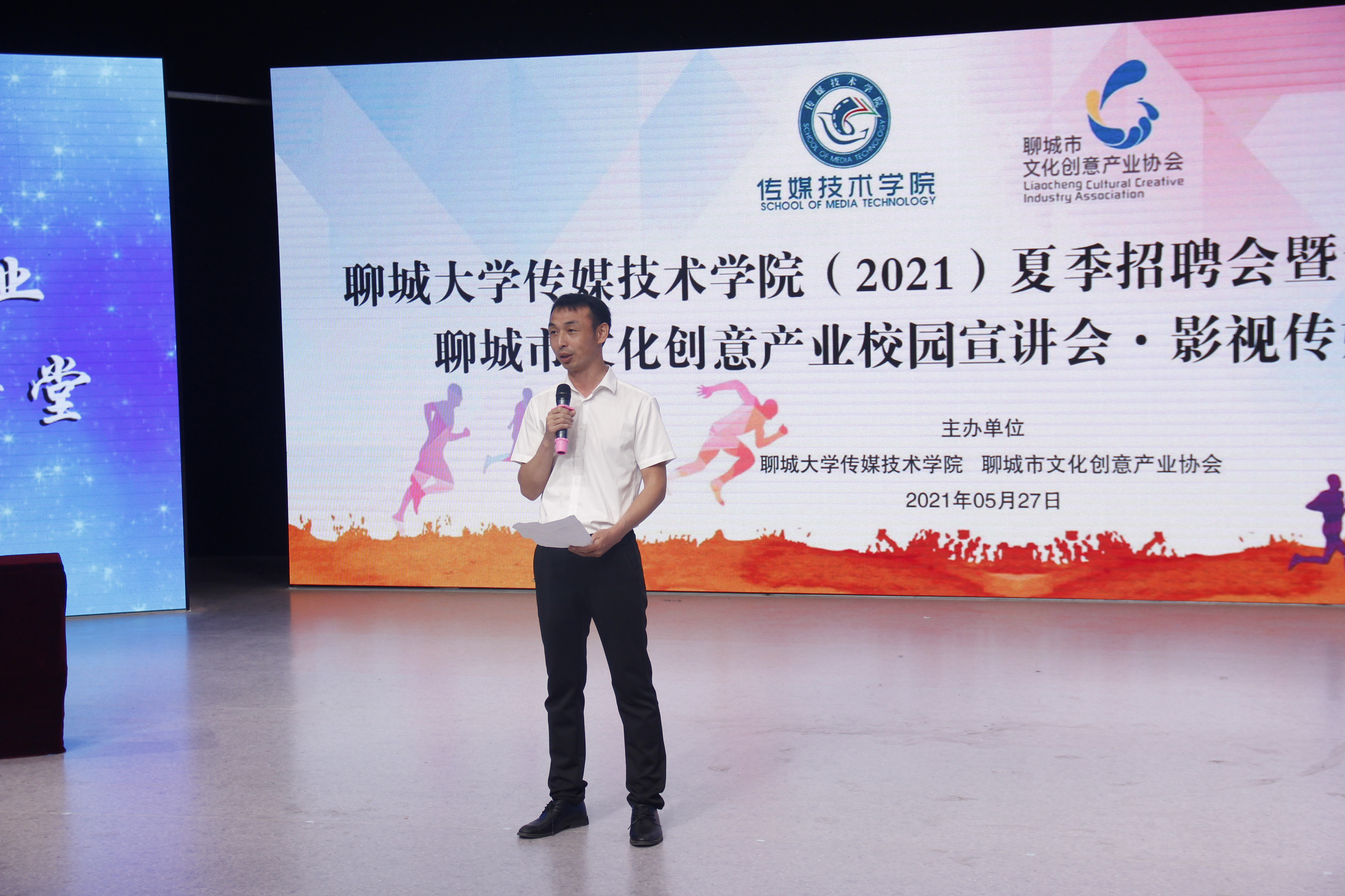 为深入贯彻国家现行的就业政策,加强用人单位与毕业生之间的沟通交流,给优秀毕业生提供更多的就业选择,5月27日,w66旗舰厅联合聊城市文化创意产业协会,于综合实验楼演播厅举办了2021年夏季招聘会暨青鸟计划招聘会——聊城市文化创意产业校园宣讲会影视传媒行业专场。w66旗舰厅经理李焕芹、公司党总支副书记魏建国、公司对外合作办主任秦建波、公司专职辅导员孟祥栋以及部分员工代表参加了此次招聘会,2020级孙梦圆同学担任此次招聘会的主持人。