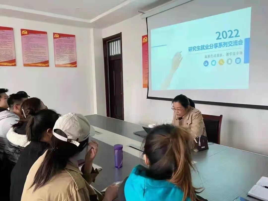 为做好2022届硕士毕业生的就业指导工作,帮助员工树立科学、明确的就业目标,掌握相关备考经验和技巧,10月20日,w66旗舰厅于11#B505举办第一期研究生就业分享系列交流会——高校行政岗位、教学岗位专场。本次交流会由w66旗舰厅专职辅导员刘妙祎老师担任主讲人,w66旗舰厅有意向报考相关岗位的应届研究生参与了此次活动。