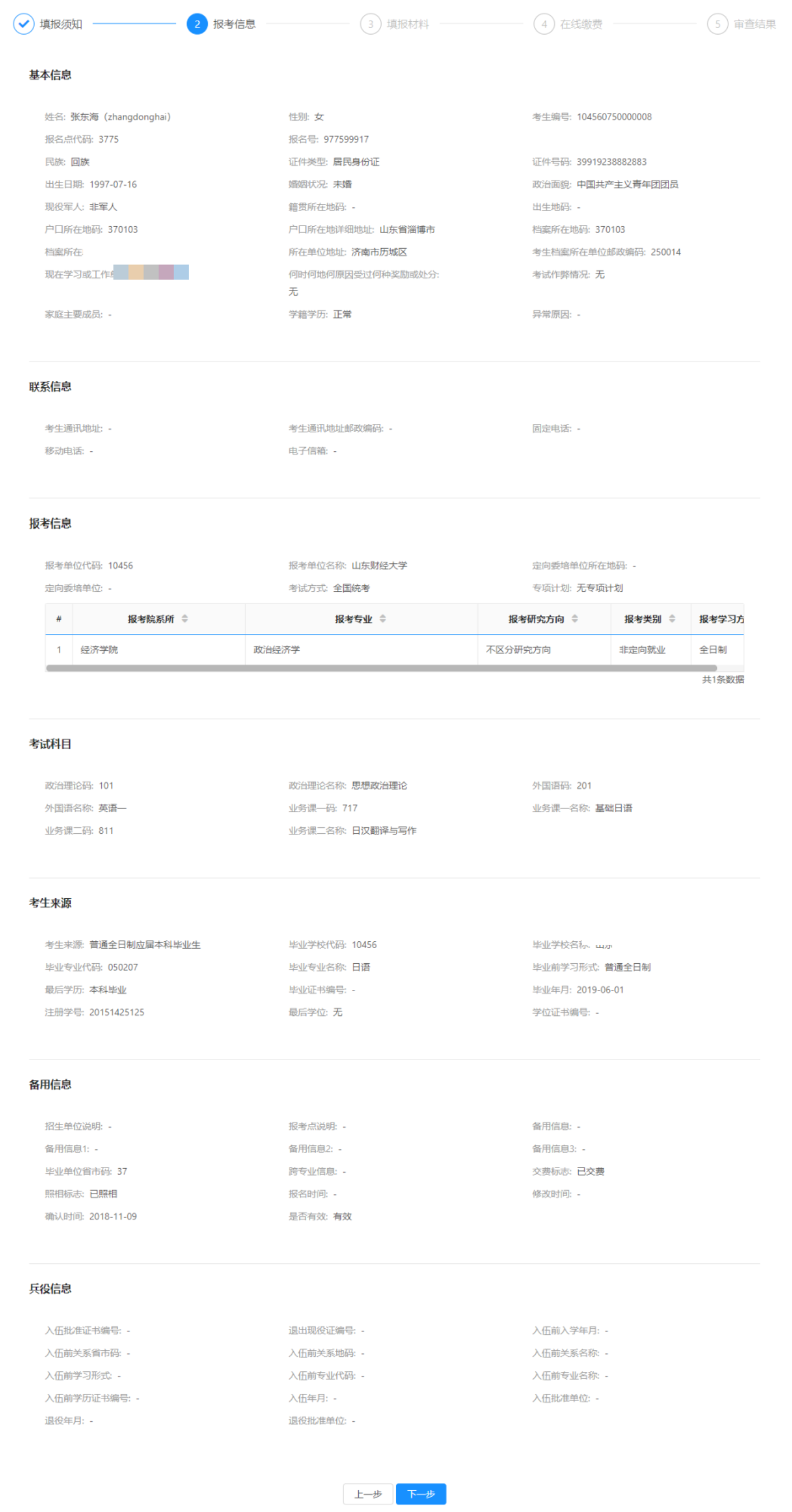 确认报考信息